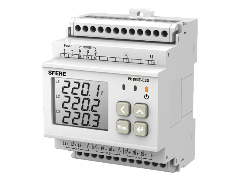PD194Z-E14系列多回路電力儀表采用導軌式安裝,可測量4路三相或12路單相電力參數,可選配開關量模塊實現開關狀態檢…