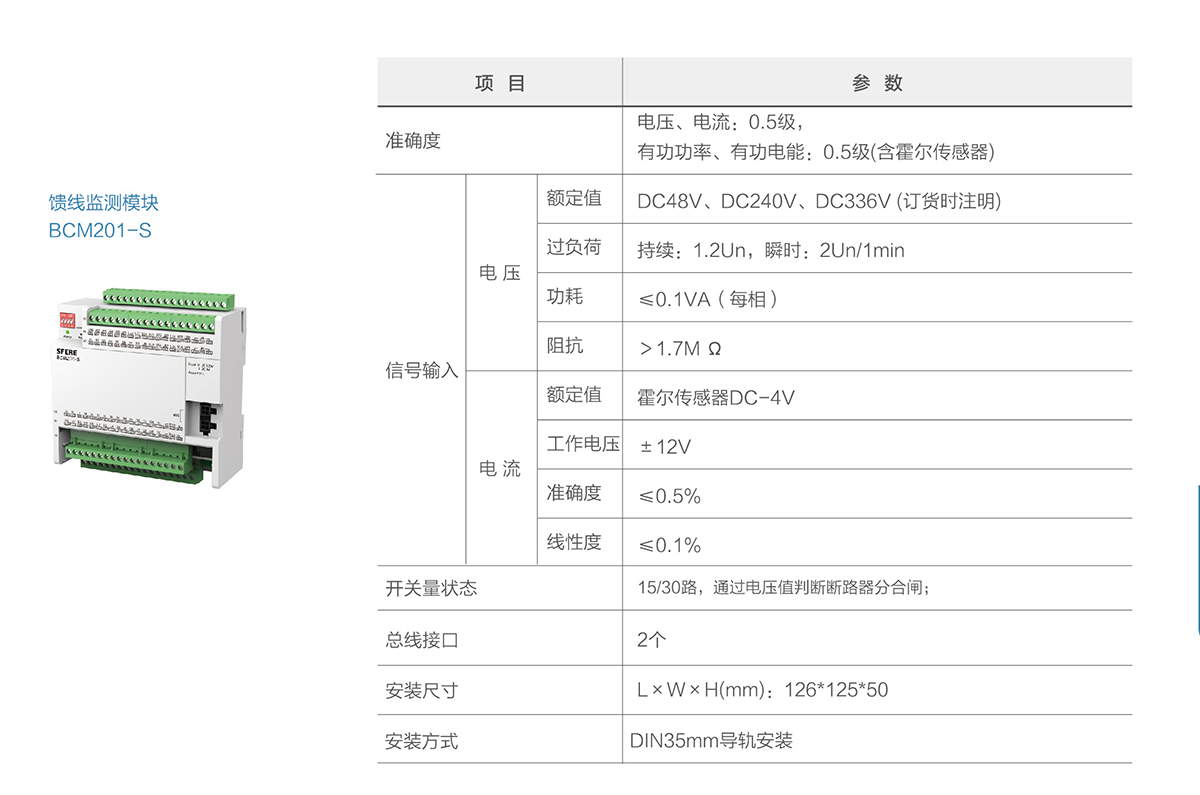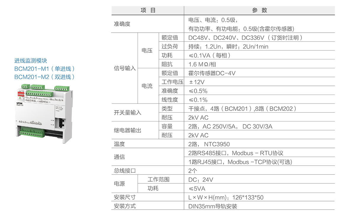 BCM201系列為直流測(cè)量。BCM系列精密配電監(jiān)測(cè)單元用于監(jiān)測(cè)數(shù)據(jù)中心交直流列頭柜的電力運(yùn)行參數(shù),測(cè)量進(jìn)線和饋線支路的電壓、電流、電能、諧波等電參量,及所有斷路器開關(guān)狀態(tài),具有跳閘報(bào)警功能。各輸出回路具有兩級(jí)用戶可設(shè)置的過(guò)流報(bào)警,預(yù)防潛在的電源故障。產(chǎn)品配置7寸彩色液晶觸摸屏,并提供以太網(wǎng)通信接口,方便接入其他系統(tǒng)。